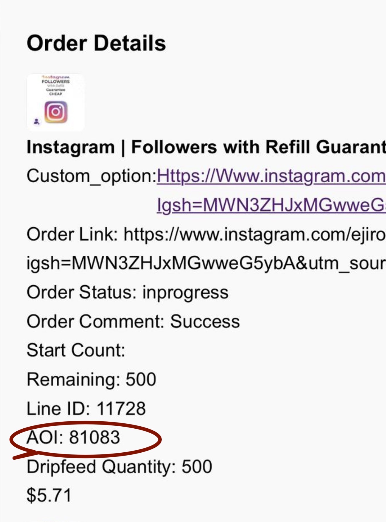- You had 5,000 followers before the order